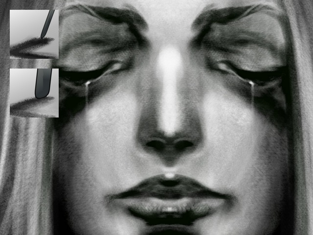 Usually you’d use these presets in black and white, but the advantage of the digital painting is that with only one preset you can still use all the colors you want, for instance to simulate the effect of color pencils.